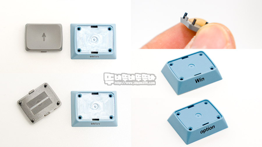 특정 키캡의 경우 DIP 스위치 옵션에 따라 키캡의 측각 인쇄 부분을 돌려 사용할 수 있게 디자인되어 플레이트 부분을 분리 시 기본으로 제공되는 전용 툴이 사용해야 키캡 결합부 손상을 최소화할 수 있으며 가급적 잦은 분리를 피하시는 게 좋을 거 같습니다.