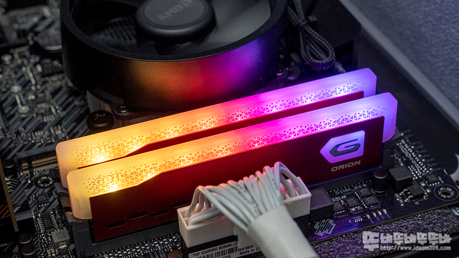 최근에 다양한 CPU 쿨러 리뷰를 하면서 GeIL DDR4-3200 CL22 ORION RGB Red 튜닝 메모리와 간섭 여부를 확인해보았는데 특별하게 문제 되진 않았습니다.