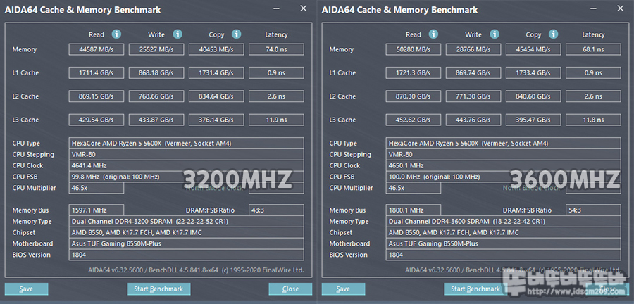 ASUS TUF B550-Plus 메인보드에 PBO 설정 후 기본 3200과 3600 오버 시 메모리 전반에 속도 및 레이턴시 향상을 확인할 수 있었는데요.