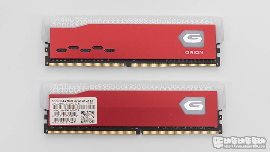 GeIL DDR4-3200 CL22 ORION RGB Red 메모리는 이전 제품과 동일한 Red 컬러 히트싱크에 RGB LED가 투영되는 디퓨저가 사용된 제품인데요.