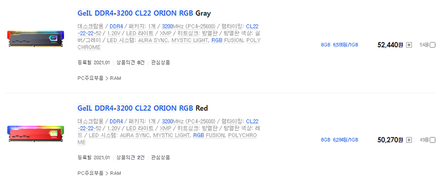 작년 11월쯤 게일(GEIL)의 ORION Red 메모리를 리뷰로 알아본 적이 있었는데 2021년에 RGB LED가 추가된 제품으로 돌아왔네요.