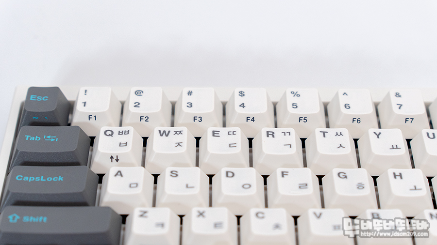 레오폴드 FC660MBT PD 키캡은 PBT 이중사출로 제작된 화이트 베이스의 블랙 각인으로 명도 대비를 그레이 베이스에 블루 계열 각인으로 채도 대비로 각인 폰트의 시각적인 집중력을 높여주고 있는 게 특징입니다.