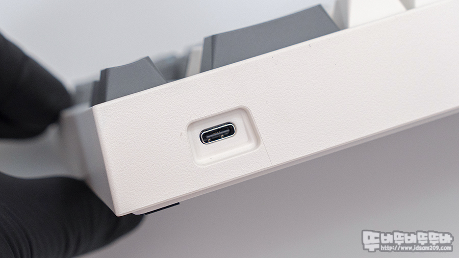 정방향 체리 MX 갈축 스위치와 윤활 처리된 보강판용 체리 방식의 스테빌라이저, 소음을 줄이기 위해 사용된 스페이스 바 보강판 홈을 막은 실리콘 바, 스페이스 바 키캡 안쪽의 부직포 흡음재 등 키보드의 잡소음을 잡기 위해 기존의 기성품에서 볼 수 없었던 다양한 시도를 확인할 수 있었습니다.