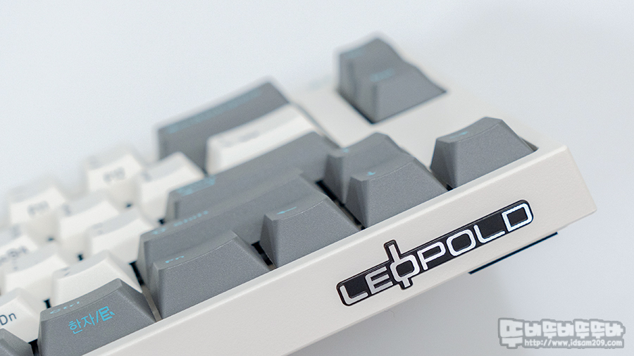 레오폴드 FC660MBT PD 키캡은 PBT 이중사출로 제작된 화이트 베이스의 블랙 각인으로 명도 대비를 그레이 베이스에 블루 계열 각인으로 채도 대비로 각인 폰트의 시각적인 집중력을 높여주고 있는 게 특징입니다.