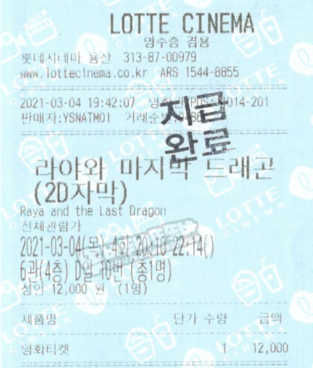 암튼 믿고 보는 디즈니 애니메이션 라야와 마지막 드래곤 나름 괜찮은 애니메이션이니 디즈니 애니메이션을 좋아하시는 분들이라면 필 관람하시기 바라며 관람 후기를 마칩니다.