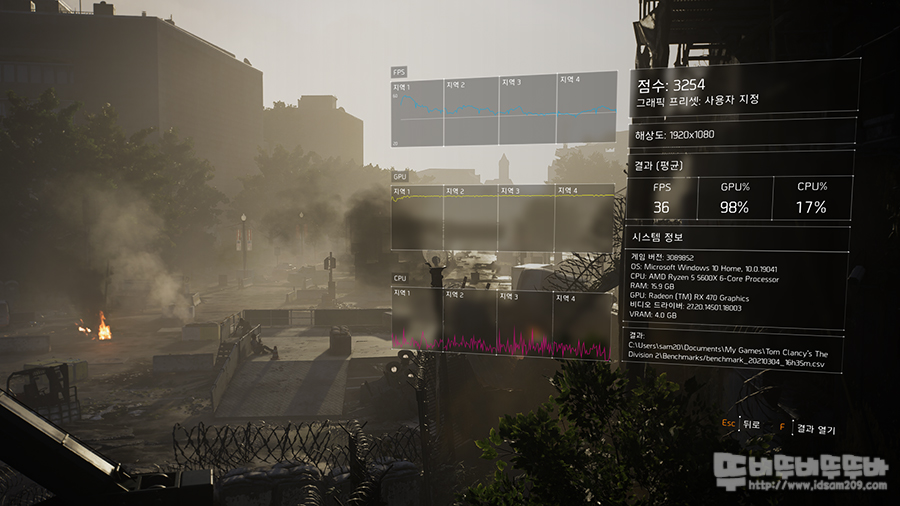 요즘 개인적으로 즐겨하는 게임이 디비전 2밖에 없어서.... 수직 동기화를 끄고 프레임 변화를 살펴보았는데요.