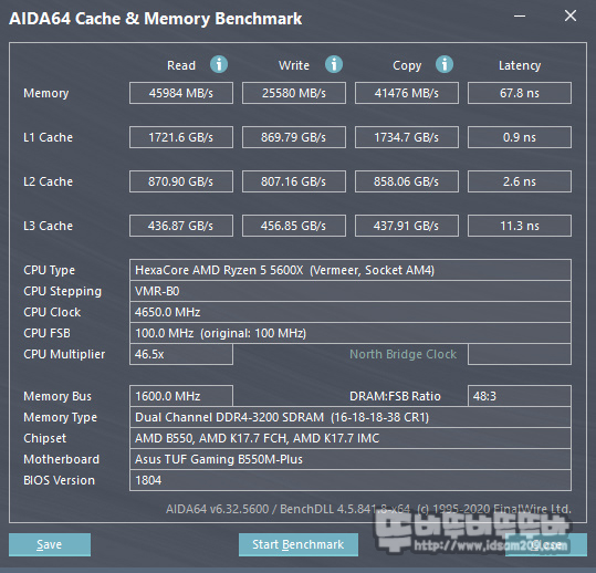 AMD 라이젠 5 - 5600X와 ASUS TUF Gaming B550M-Plus 구성에 HP DDR4-3200 CL16 V8 RGB 듀얼 메모리 구성으로 XMP 적용 전 성능과 XMP 적용 후 성능을 비교해보도록 하겠습니다.