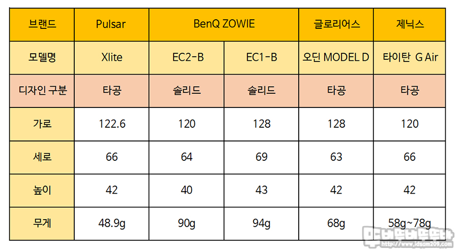 ▶ 마우스 사이즈 비교