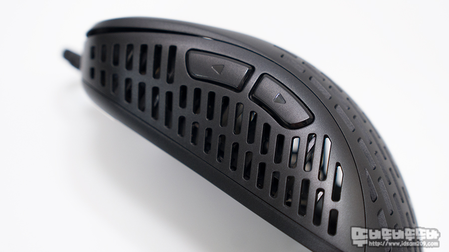 시원시원하게 타공 처리가 되어있는 하우징 덕에 마우스 오랫동안 그립 시 촉촉한 습기를 느낄 수 없었습니다.
