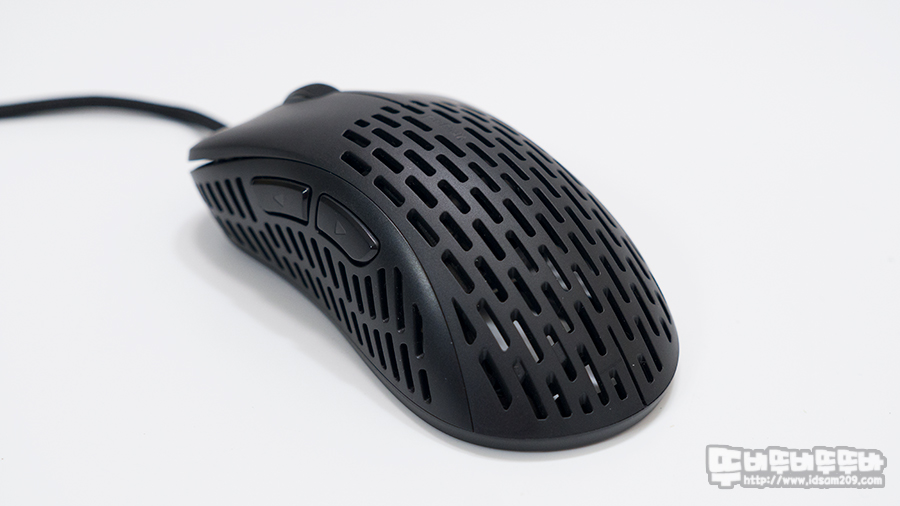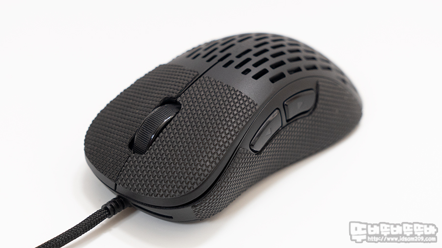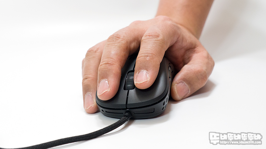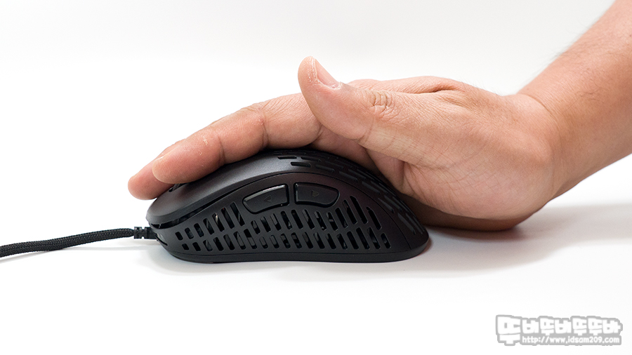 시원시원하게 타공 처리가 되어있는 하우징 덕에 마우스 오랫동안 그립 시 촉촉한 습기를 느낄 수 없었습니다.