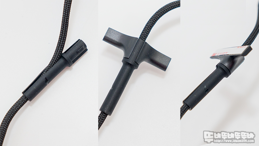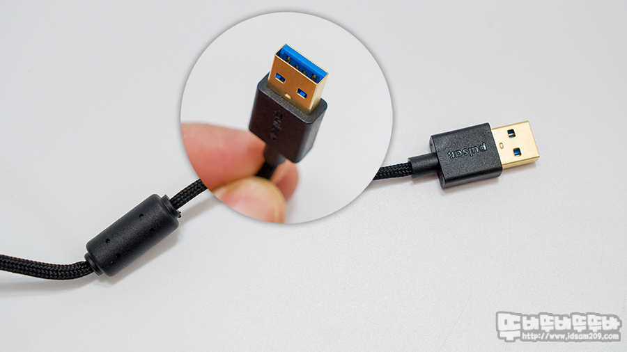 파라코드 끝부분에는 금도금 USB 단자와 노이즈 유입을 막아주는 페라이트 코어가 부착되어있으며 USB-A 단자에는 브랜드가 아이덴티티로 사용하는 블루컬러 플라스틱이 사용되었습니다.