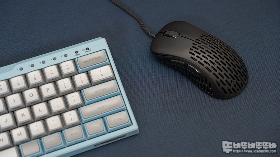 지금까지의 초경량과는 결이 틀린 약 48.9g 무게, PIXART의 최상의 센서인 PAW3370가 사용된 게이밍에 최적화된 제품으로 그 흔한 LED 라이팅과 DPI 버튼이 없어 게임에 집중할 수 있게 디자인되었으며 겉보기엔 약해보지만, 미국 군사 표준 낙하 테스트인 MIL-STD-810G를 받은 내구성이 튼튼한 게이밍 마우스인데요.