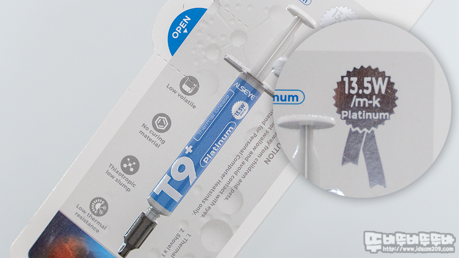 ALSEYE T9+ Platinum는 열전도율 13.5W/m-k로 상당히 높은 편이네요.
