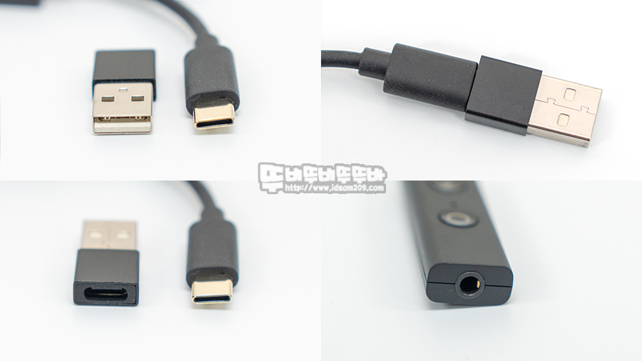 USB-C to USB-A 변환 젠더 단자 모습, DAC에 USB-A 변환 젠더 연결 모습, DAC 3.5mm 입력단자 모습인데요.
