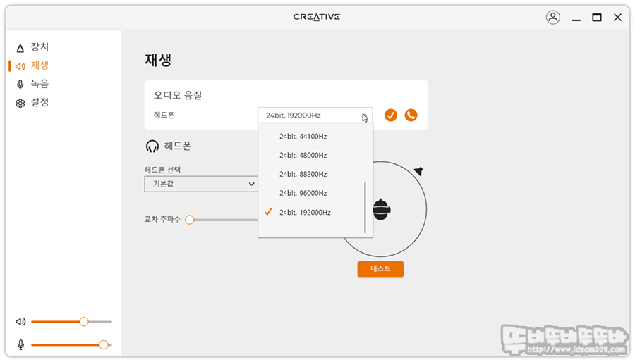 재생 메뉴에서는 사운드의 질을 선택하는 메뉴로 최대 24비트/192kHz 선택이 가능합니다.