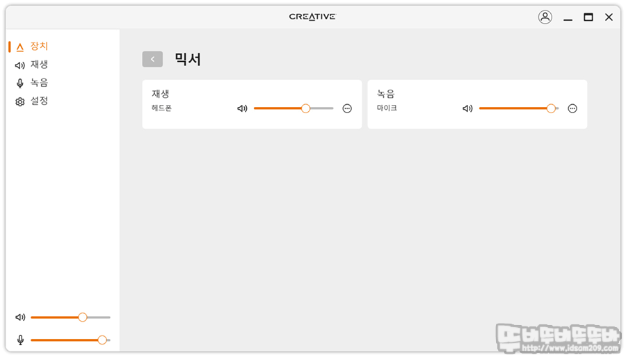 믹서는 헤드폰의 볼륨과 마이크의 볼륨을 조절하는 메뉴로 구성되어있습니다.