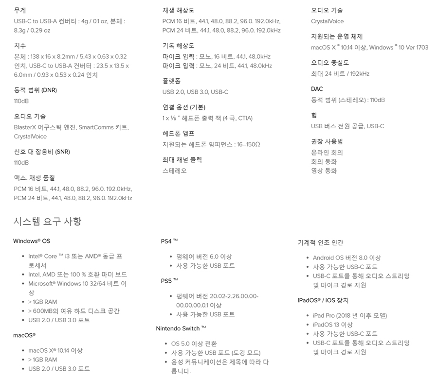 DAC 하면 비싸고 최소 스마트폰 사이즈 정도 되는 기기가 연상되지만 USB-C 단자를 기본으로 하는 작은사이즈의 Creative Sound Blaster Play 4 DAC는 스마트 기기 또는 PC, 콘솔 게임기 등 멀티 플랫폼에 사용이 가능한 제품인데요.