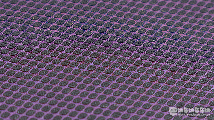 일반적인 패드의 경우 바닥 면 전체는 천연라텍스에 빗살무늬가 들어간 형태를 사용하지만 핫라인게임즈 게이밍 마우스패드 T-Series는 빗살무늬 라텍스에 박음질 처리로 건포도 느낌으로 돌출된 러버 베이스가 미끄럼을 방지하고 있습니다.