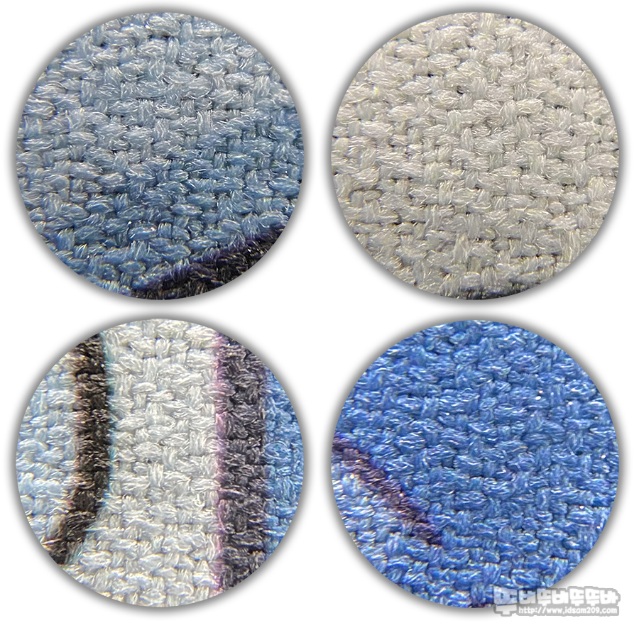 확대경으로 패드의 표면을 확인해보면 십자 형태로 잘 짜인 모직을 볼 수 있으며 교차하는 모직 중에 돌출된 부분이 없이 슬라이딩과 브레이킹 균형을 잘 잡아주는 느낌입니다.