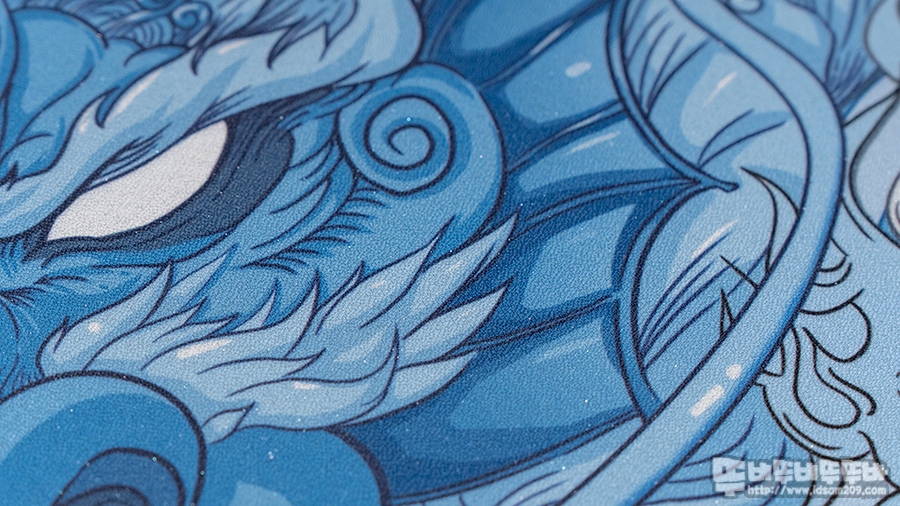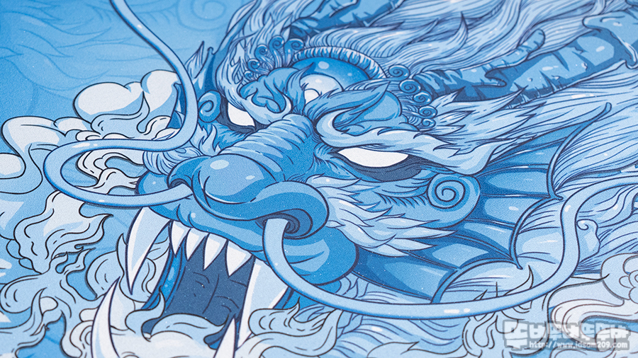 핫라인게임즈 T-Series 450 x 400 x 4mm의 넓은 글라이딩 영역과 진주 펄이 도포된 하이브리드 표면에 슬라이딩과 브레이킹을 적절하게 지원하는 하이브리드 패드로 만화 같은 고해상도 드래곤 이미지가 인상적인 제품인데요.