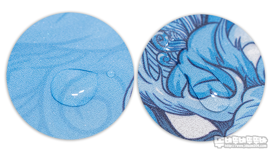 대부분의 마우스 패드는 생산 초기에 약간의 코딩이 되어있어 약간의 발수 능력이 있는 편인데 핫라인게임즈 게이밍 마우스패드 T-Series도 방수 코팅 정도는 아니지만, 초반에 약간 발수 능력이 있는 편입니다.