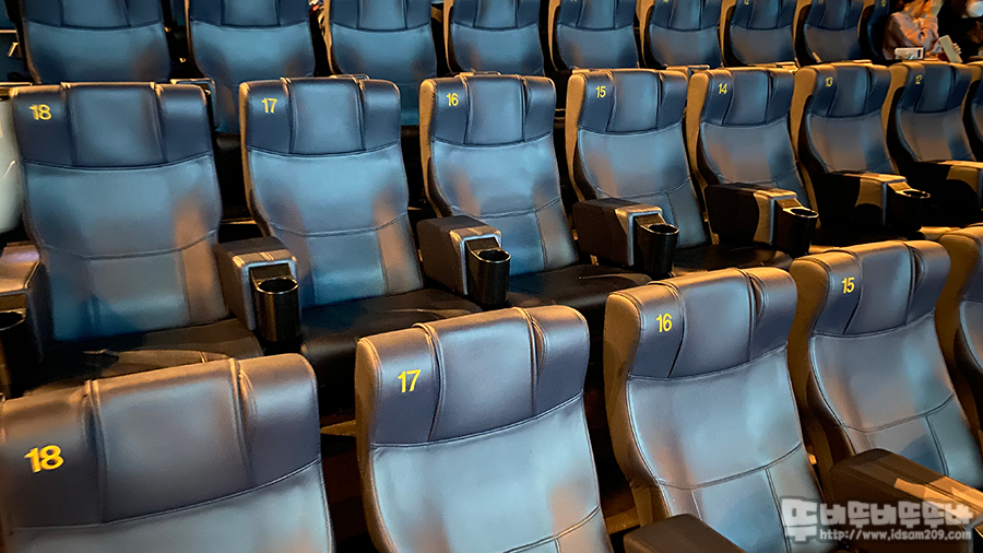 앞/뒤 좌석 간의 간격이 넓으며 첫 번째 좌석과 스크린 간의 거리가 있어 뒤로 갈수록 스크린이 작게 느껴집니다.