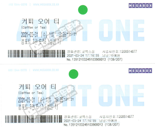 장소 : 메가박스 코엑스 컴포트 3관 E-16, 17
