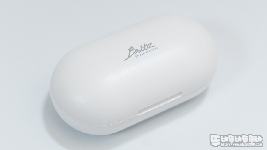 작고 아담한 브리츠 LuxTWS7 오픈형 완전무선 블루투스 이어폰 충전 케이스 뚜껑 부분에는 브리츠의 시그니처 로고가 인쇄되어있으며, 뒤쪽에는 위/아래 구분 없이 사용하는 USB-C 타입의 충전단자 모습을 확인할 수 있고요.