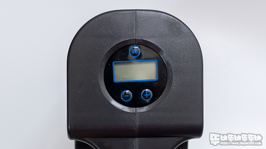 제품 상단부의 LCD 디스플레이의 R 버튼을 이용하여 PSI, KPA, BAR, kg/㎠ 압력 단위 선택과 +, - 버튼으로 공기압 수치 입력이 가능하고 야간에 작업 시 편리한 사용을 위해 LED 백라이트도 지원하고 있습니다.