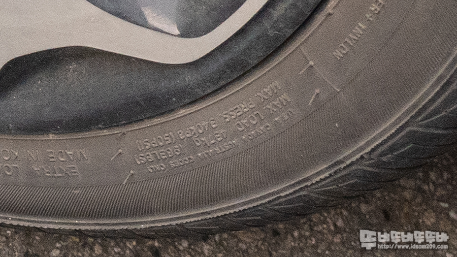 타이어에는 최대 50 PSI로 표기되어있지만, 최대치에 대한 값은 참고사항이고 기본으로 주입된 공기압을 기준으로 여름에는 공기압이 팽창하는 것을 감안하여 기본 공기압보다 1~2 PSI 높게, 겨울에는 수축하기에 기본 공기압에서 약 10% 정도 계산하여 넣어 주면 좋다고 합니다.