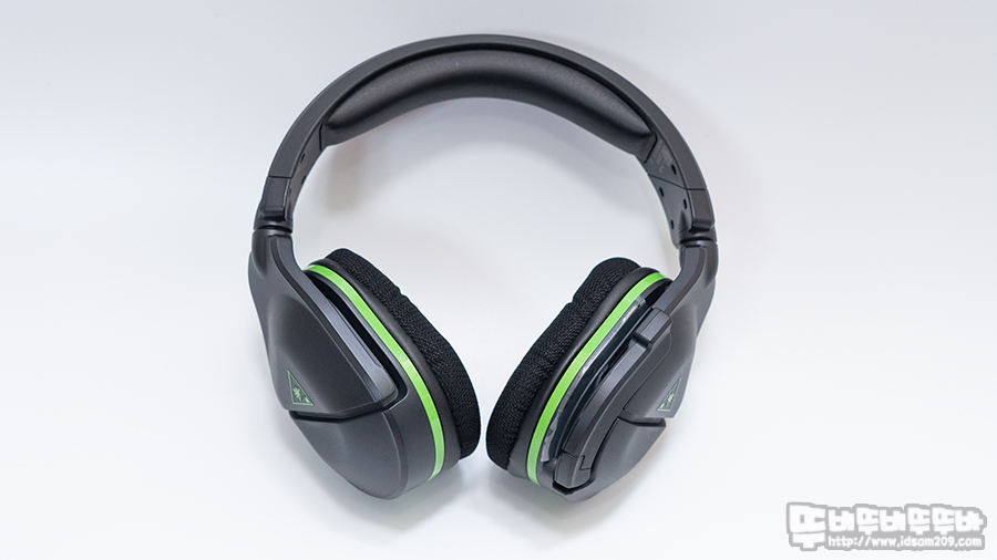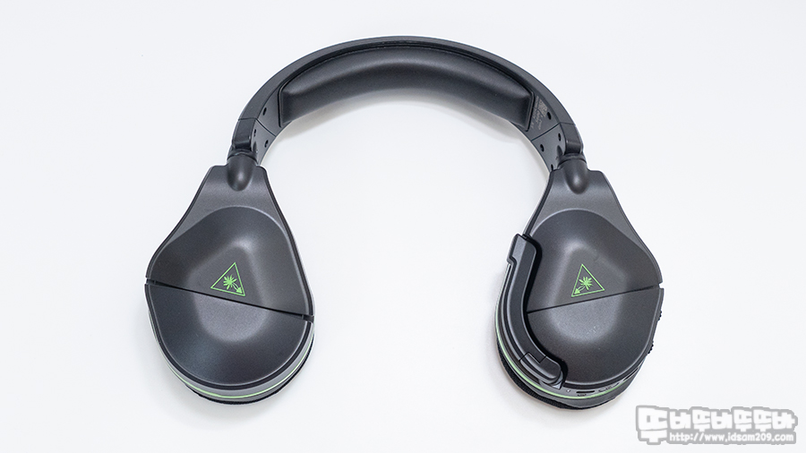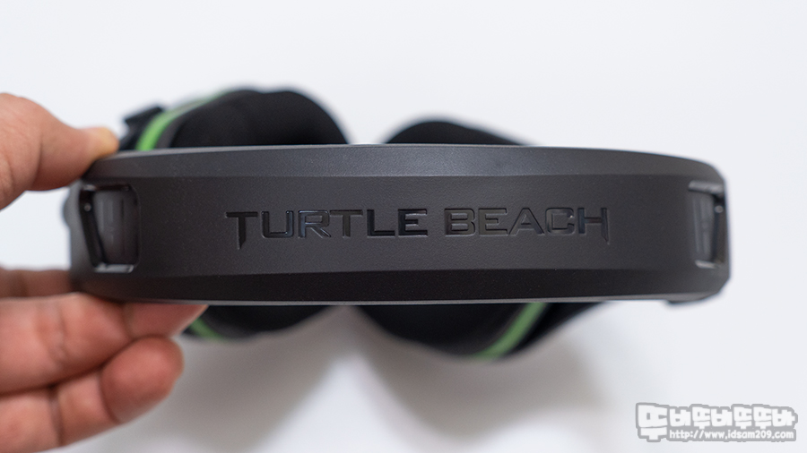 헤어밴드 상단에 터틀비치 로고 각인 모습.