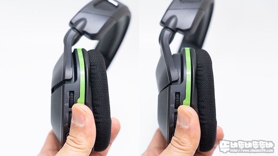 이어컵 하우징과 헤어밴드는 약간의 틸트를 지원하는 구조지만 헤드셋 착용 시 완벽하게 11자 형태로 유지되지 않기에 헤어밴드 길이 조절로 헤드셋의 장력을 완화해야 하니 참고하시기 바랍니다.