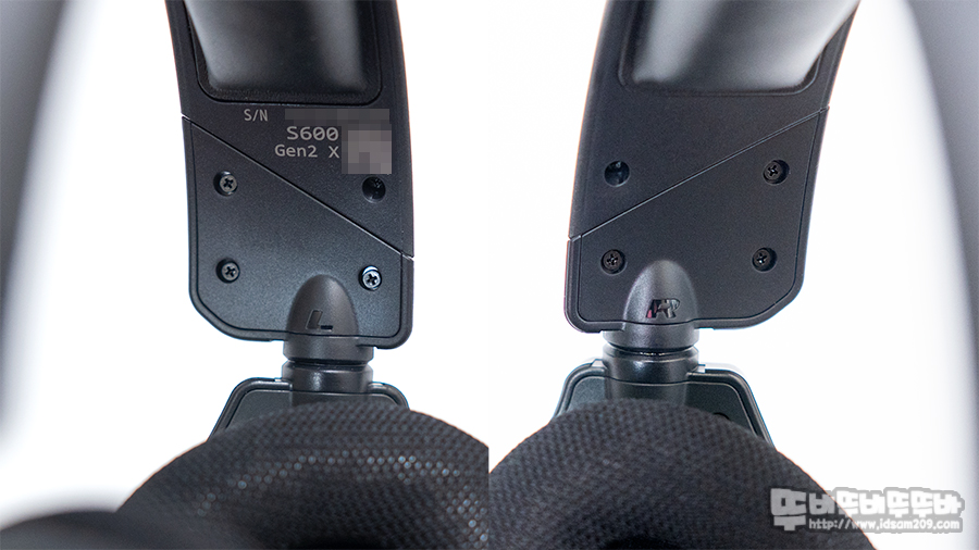 터틀비치 스텔스 600 GEN2 헤드셋 안쪽에 L, R 표시 모습.