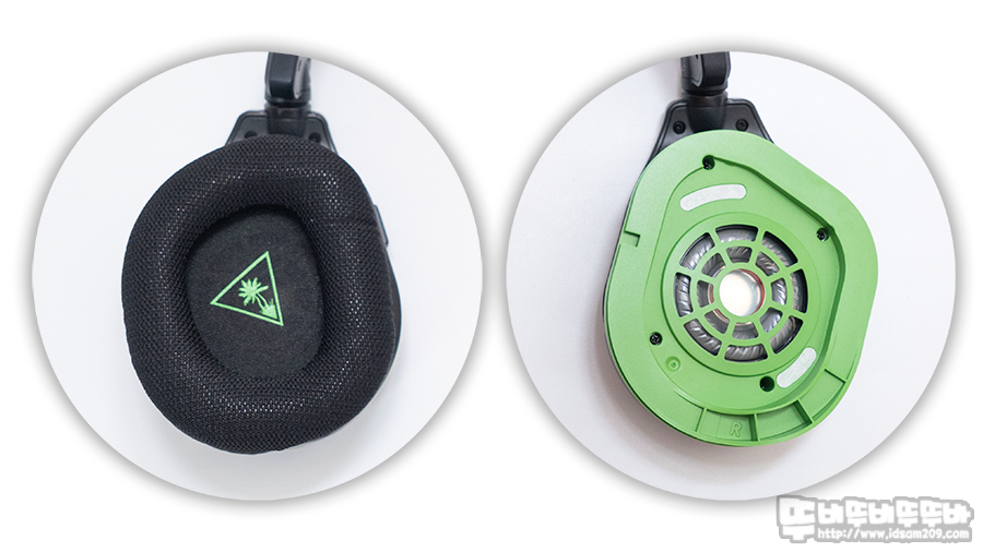 커버 형식의 이어패드는 원형이 아닌 50mm 드라이브 유닛이 부착된 다각형 모양의 플레이트 디자인과 일치되는 오버이어 형태로 디자인되었습니다.