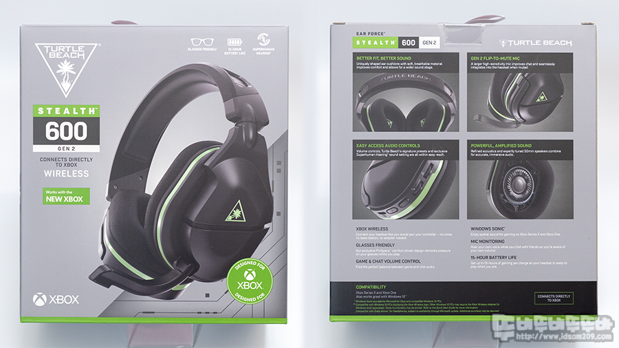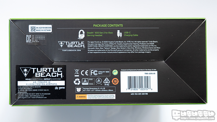 터틀비치 스텔스600 GEN2 블랙 XBOX 패키지는 XBOX를 상징하는 Green 컬러가 사용되어 Blue 컬러를 사용하는 PS 제품과 구분이 되는 특징과 터틀비치 로고와 스텔스 600 Gen2 모델명 그리고 XBOX 모델임을 강조하고 있고요.