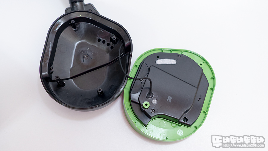 반원 느낌의 헤어밴드는 플라스틱 사출로 제작되어 고정된 디자인이며 밴드 안쪽에는 쿠션감이 좋은 패드를 사용하고 있어 정수리 부분에 눌림을 최소화해주고 있습니다.