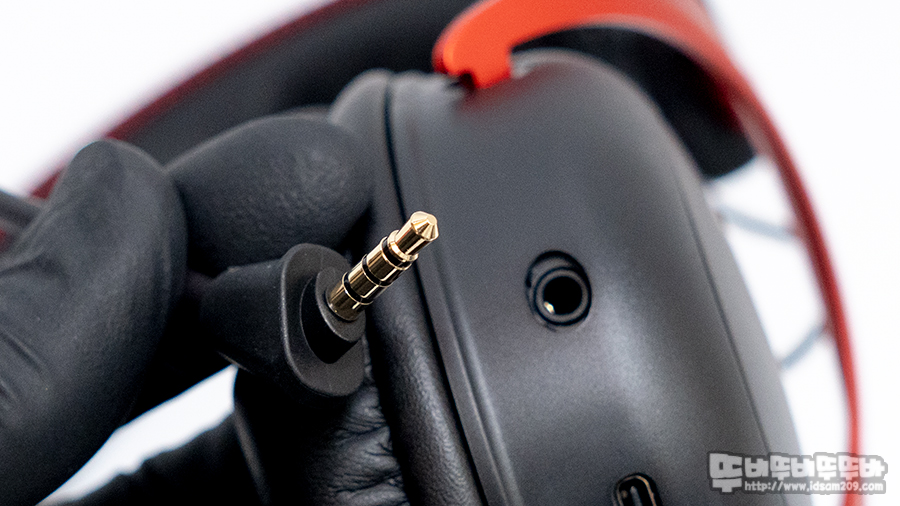 킹스톤 HyperX Cloud II 무선 게이밍 헤드셋은 왼쪽의 LED 인디케이터, 전원 스위치, 마이크 On/Off 스위치, USB-C 충전 단자와 마이크 소켓 그리고 오른쪽에 볼륨 조절 다이얼 기능을 분리하고 있습니다.