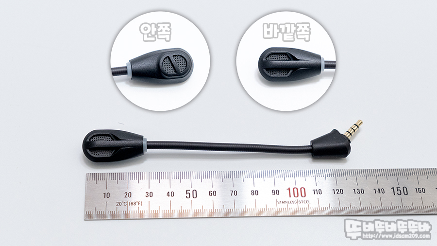 마이크는 몰딩 부분에서 마이크 끝단까지 약 110m로 적당한 편이며 자브라 스틸이 사용되어 사용자가 원하는 구부림을 잘 유지합니다.