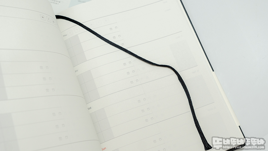 2021 플래너-L에는 플래너가 펼쳐지는 것을 방직하는 밴드와 북마크(가름 끈)를 제공하고 있고요.