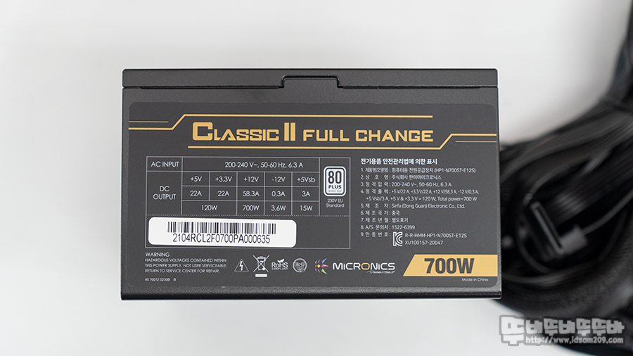 #마이크로닉스 #클래식2 #풀체인지 #700W #파워서플라이 #ClassicII #FullChange #한미마이크로닉스 #12V가용률100% #뚜비뚜비뚜뚜바 #idsam209 #v92af0c07
