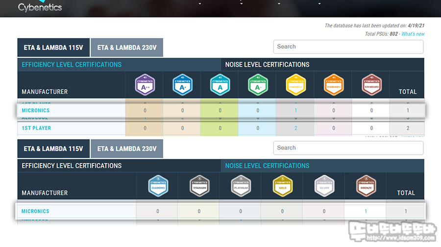 Cybenetics 인증 부분을 확인해보기 위해 사이트에서 검색을 해보니 아직 갱신이 안된 건지 예전 정보만 확인이 되는데요.