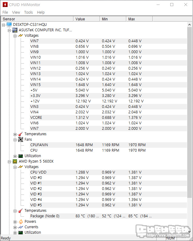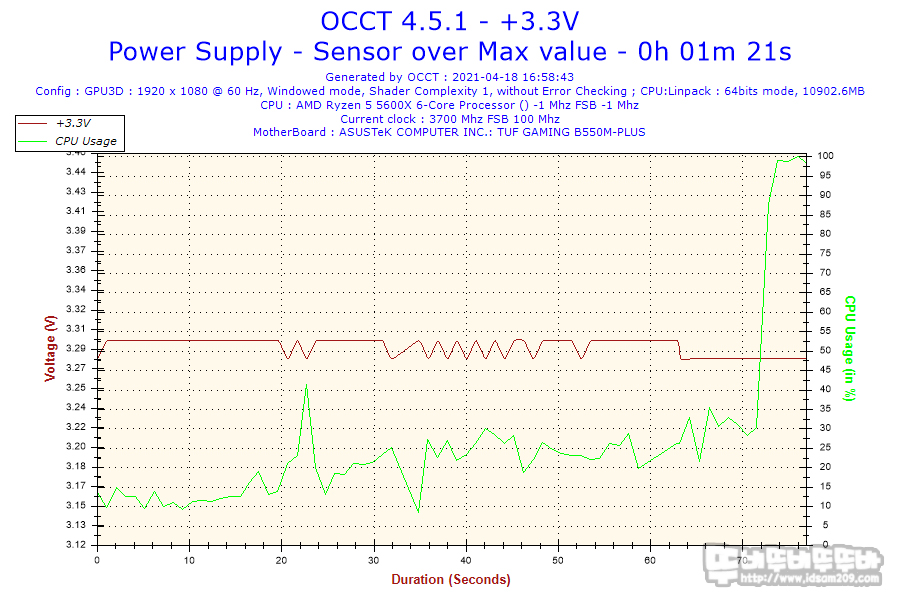 파워서플라이 전용 로드기를 이용한 테스트는 아니지만 OCCT와 AIDA64 시스템 안정화 테스트 시 전압을 확인해보면 안정적인 전압을 보여주는 것을 확인할 수 있습니다.