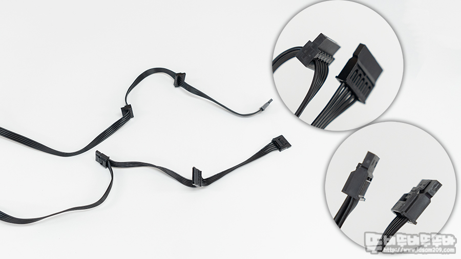 딸각하고 걸리는 락기능을 제공하는 락킹 커넥터가 적용된 SATA 케이블은 450+150+150mm 길이로 징검다리 형태로 구성된 커넥터 방식과 브릿지 방식으로 구성된 커넥터가 사용되어 총 6개의 커넥터를 제공하고 있어 SSD 연결 시 시스템 환경에 맞게 활용하기 좋은 편입니다.