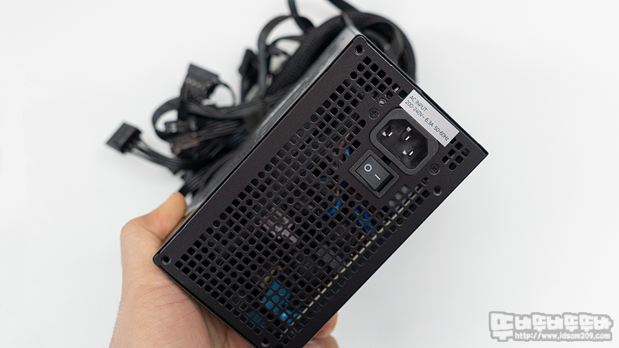 전원 소켓과 스위치가 있는 샤시면은 넓은 면적의 사각형 타공 디자인으로 공기 배출이 용이하게 디자인되었습니다.