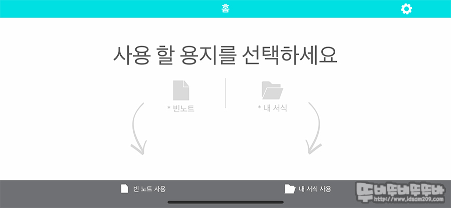 앱을 실행하면 마주하게 되는 첫 화면인데요. 여기서 빈 노트를 선택하여 시작하시면 됩니다.