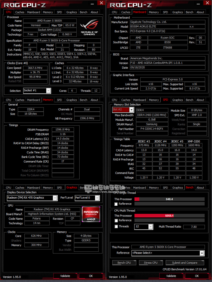 CPU-Z 벤치에서는 싱글 쓰레드는 648.4점, 멀티 쓰레드는 5059.1점을 확인할 수 있습니다.