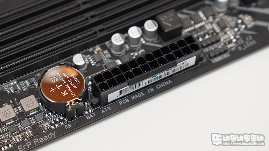 6GB/s 속도를 지원하는 4개의 SATA 포트 그리고 24핀 메인보드 전원 커넥트 모습.