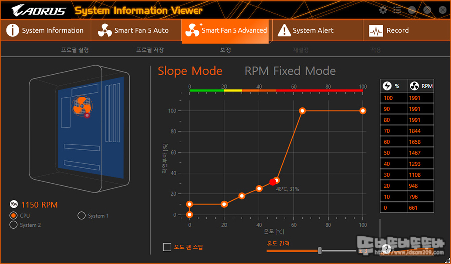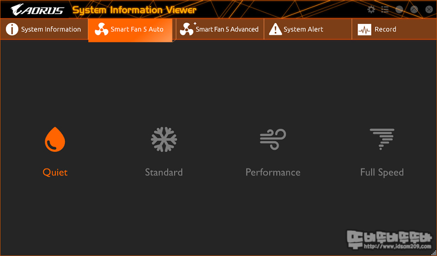 Smart Fan5의 경우 C-MOS의 메뉴로 구성이 되어있지만 윈도우 소프트웨어 설치를 통해 윈도우 환경에서 제어가 가능합니다.