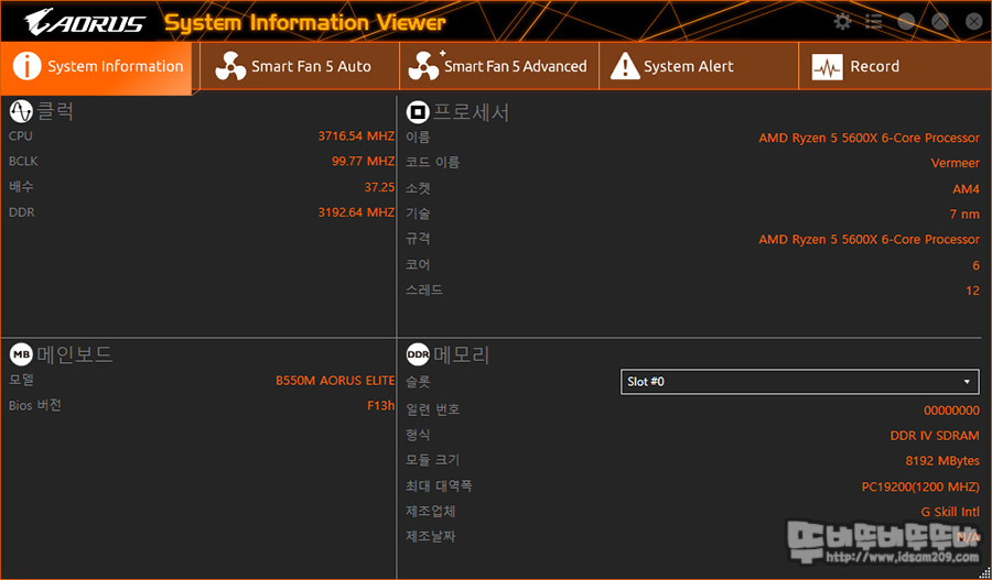 GIGABYTE B550M Aorus Elite 메인보드로 구성한 테스트 시스템은 다음과 같습니다.