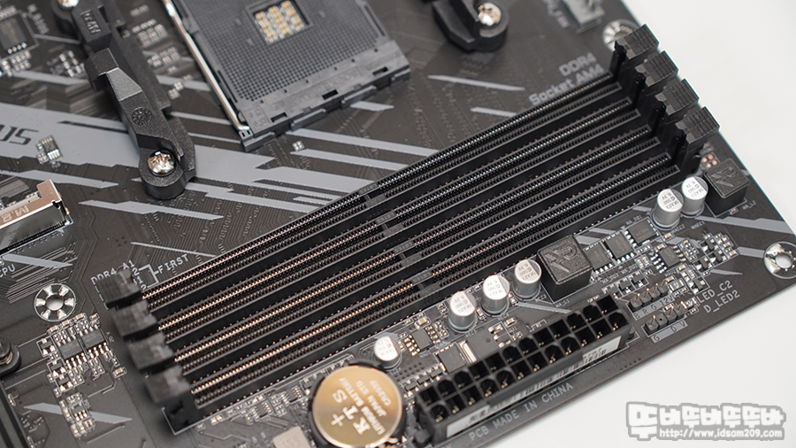 PCIe 4.0 x4을 지원하는 M.2_1 슬롯과 PCI-E 4.0 x16을 지원하는 VGA 슬롯에는 금속 느낌이 더해져 눈에 띄며 검정색 일반 슬롯은 PCIe 3.0 x4을 M.2_2 슬롯과 PCIe 3.0 x4을 지원하는 VGA 슬롯으로 구분되고 있습니다.